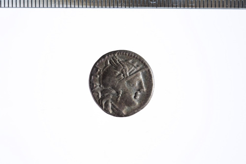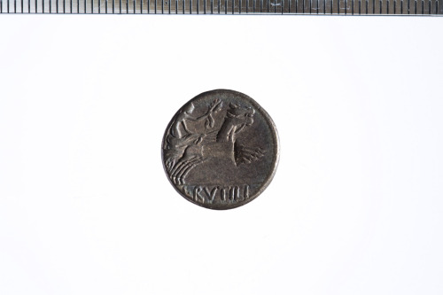 Dritto: Testa galeata di Roma a d. con elmo alato; c.p.. Rovescio: Vittoria in biga a d. che regge le redini con la mano s. e una corona con la d.; c.p.