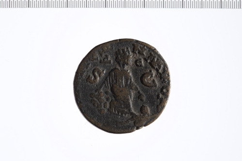 Dritto: Busto di Elagabalo a d. laureato e con paludamentum.. Rovescio: Tyche di Antiochia, velata e turrita, seduta a d. su roccia, trattiene spiga di grano,sotto divinità fluviale che nuota.