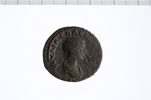 Dritto: Busto drappeggiato di Giulia Soemias a d.. Rovescio: Barca verso d.