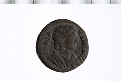 Dritto: Busto drappeggiato di Giulia Maemea a d.. Rovescio: Cacciatore nudo a d. che caccia con lancia un verro a s., dietro di lui un segugio che sta attaccando il verro.