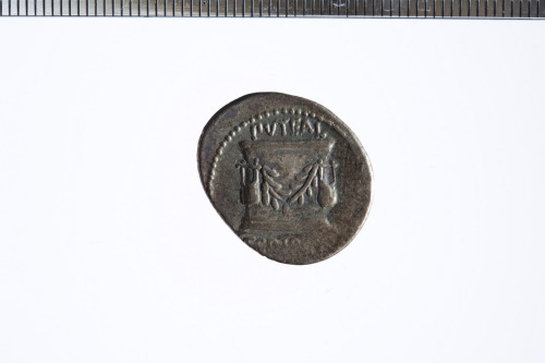 Dritto: Testa del Bonus Eventus a d.; c.p.. Rovescio: Il pozzo Scribonianum decorato con una ghirlanda e due lire; alla base, un martello; c.p.