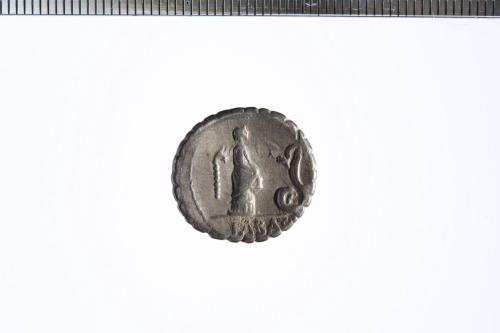 Dritto: Testa di Giunone Sospite a d.; dietro un simbolo tipo Crawford pl. LXVIII n. 88; c.p.. Rovescio: Una ragazza e un serpente l'una di fronte all'altro; dietro, un simbolo tipo Crawford pl. LXVIII n. 88; c.p.