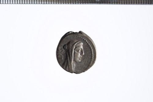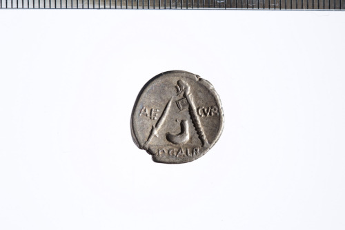 Dritto: Testa velata di Vesta a d.; c.p.. Rovescio: Coltello, culullus e ascia; c.p.