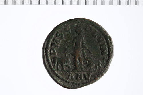 Dritto: Busto di Gordiano a d. laureato e drappeggiato.. Rovescio: Figura femminile stante di faccia con testa a s. e lungo chitone tiene entrambe le mani sopra le teste di un leone a d. e di un toro a s.