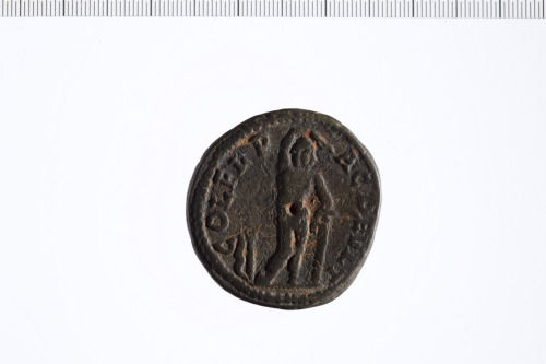 Dritto: Busto di Gordiano III a d. radiato, drappeggiato e corazzato.. Rovescio: Apollo stante di faccia, testa a d., braccio d. sollevato sulla testa e braccio s. appoggiato su una colonna; arco e frecce ai piedi.