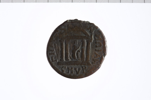 Dritto: Busto di Giulia Domna a d.. Rovescio: Tempio tetrastilo con frontone e statua di Tyche con timone e cornucopia al centro.