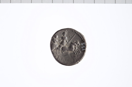 Dritto: Busto di Libertas drappeggiato e diademato a d.; dietro pileus. Cerchio perlinato.. Rovescio: Guerriero con lancia in biga a d. aiuta figura togata a salire. Cerchio perlinato.
