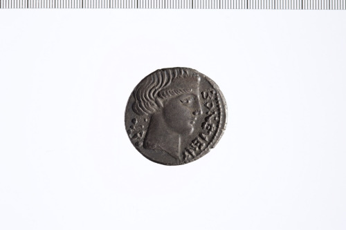 Dritto: Testa di Bonus Eventus a d. Cerchio perlinato.. Rovescio: Puteal Scribonianum decorato con ghirlanda e lire; alla base martello. Cerchio perlinato.