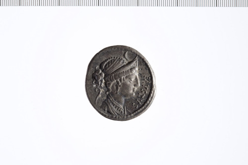 Dritto: Busto di Diana a d. drappeggiato e diademato, sopra un crecente; dietro littus. Cerchio perlinato.. Rovescio: Sulla seduta a s.; sulla s. Bocchus con ramo d'ulivo nella mano d.; a d. Jugurtha con le mani legate dietro la schiena. Cerchio perlinato.