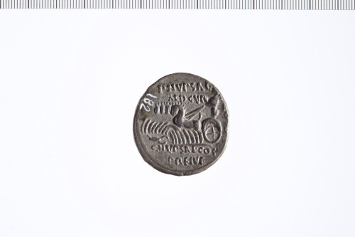 Dritto: Cammello a d. con figura inginocchiata che tiene le redini nella mano s. e un ramo di ulivo nella mano d. Cerchio perlinato.. Rovescio: Giove in quadriga a d. tiene le redini nella mano s. e un fulmine nella mano d. sotto scorpione. Cerchio perlinato