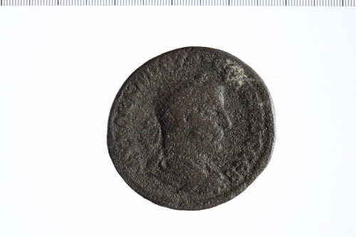 Dritto: Busto radiato(?) di Filippo I a d.,paludato e corazzato,di tre quarti, di spalle, contorno perlinato.. Rovescio: Tempio tetrastilo con peribolos, entro il tempio figura drappeggiata; in esergo, capricorno; contorno perlinato.