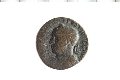 Dritto: Busto laureato di Filippo I a s.,paludato e corazzato,di tre quarti, in avanti.. Rovescio: Figura femminile seduta a s. (Tyche?), regge con la d. statua cultuale. Ai suoi piedi divinità fluviale che nuota verso d. (Chrysoroas); contorno perlinato.