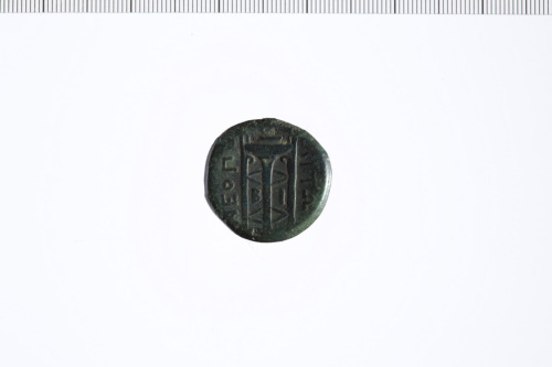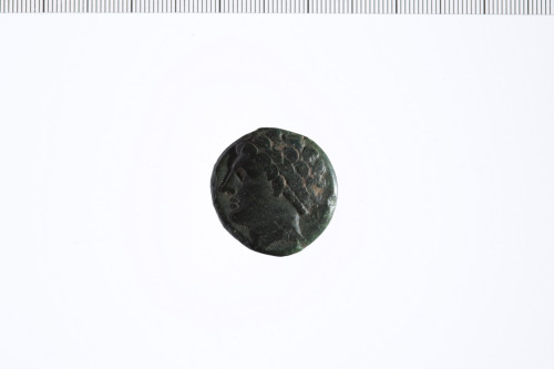 Dritto: Testa maschile laureata a s.. Rovescio: tripode