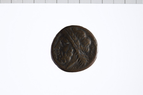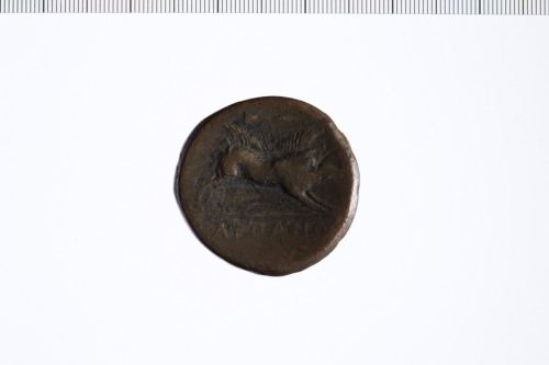 Dritto: testa maschile a s.. Rovescio: Cane segugio a d. con legenda in lingua osca