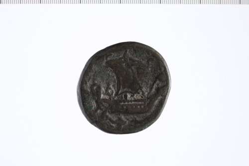 Dritto: Testa radiata di Nerone a s.. Rovescio: Barca a vela a d.