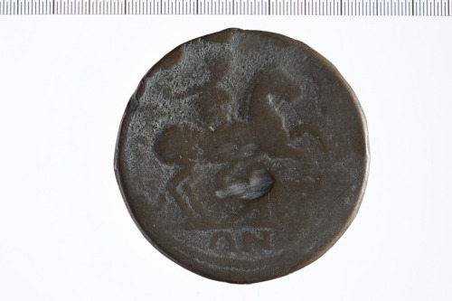 Dritto: Busto di Caracalla a d., laureato e con paludamentum. Rovescio: Imperatore a cavallo verso d. e un nemico sotto le zampe del cavallo.