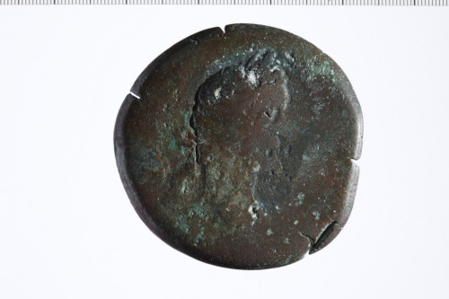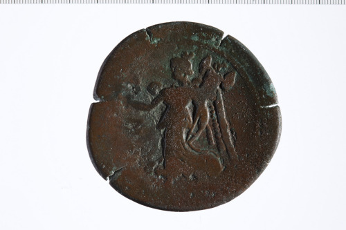 Dritto: Busto laureato di Antonino Pio a d., di tre quarti, in avanti.. Rovescio: Nike in moto verso s., tiene una corona con la d. e un trofeo composto di elmo, lorica e due scudi con la s.