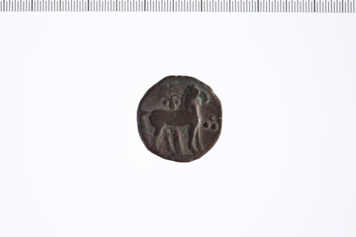 Dritto: Testa di Tanit a s. con corona con chicco di grano e collana pendente. A d. globetto.. Rovescio: Cavallo stante a d. davanti ad una palma. Tre globetti.