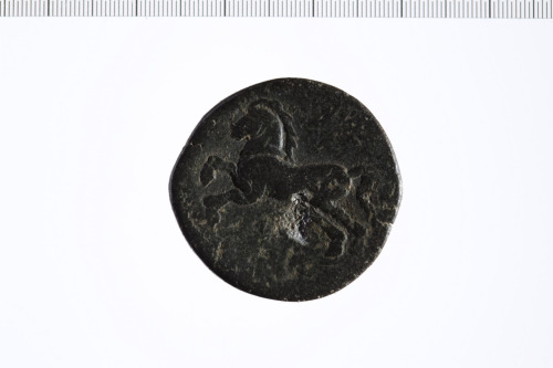 Dritto: Testa barbata e laureata a s. Contorno perlinato.. Rovescio: cavallo al galoppo a s. Contorno lineare.
