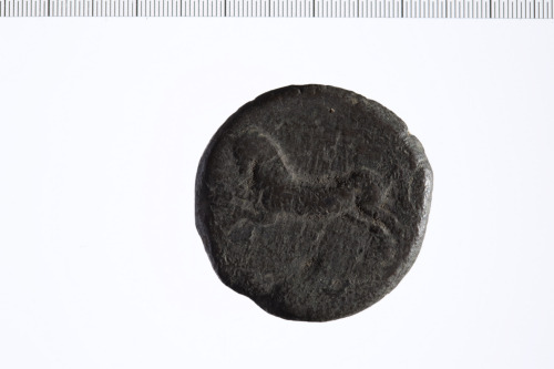 Dritto: Testa barbata e laureata a s. Contorno perlinato.. Rovescio: cavallo al galoppo a s. Globetto. Contorno lineare.