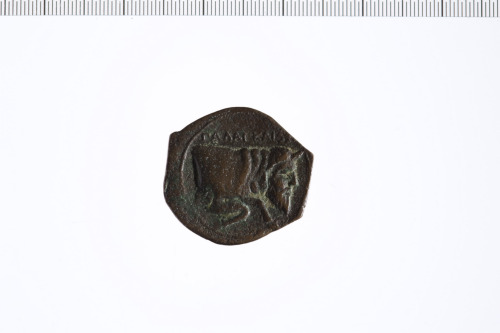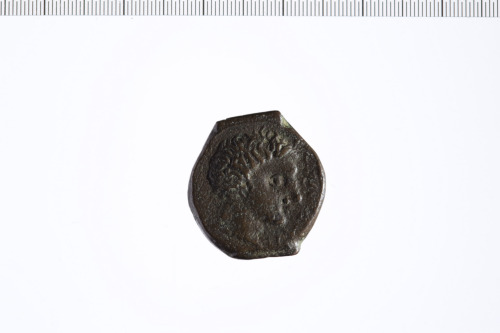 Dritto: Testa di Tanit a s. Contorno perlinato.. Rovescio: Cavallo stante a d. di fronte alla palme.