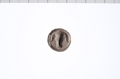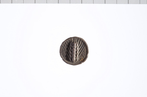 Dritto: Spiga di orzo. Rovescio: Cranio di bue incuso