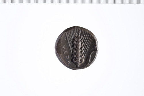 Dritto: Testa di Leucippus elmata a d.. Rovescio: Spiga d'orzo