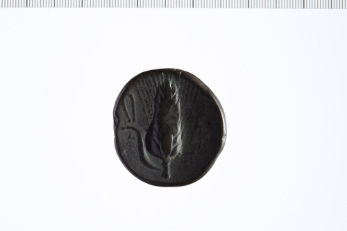 Dritto: Testa di Persefone a s.. Rovescio: Spiga d'orzo; a s. lingua