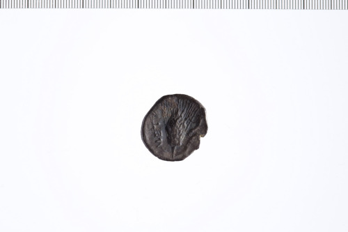 Dritto: Testa di Atena elmata a d.. Rovescio: Spiga d'orzo; a d. cornucopia