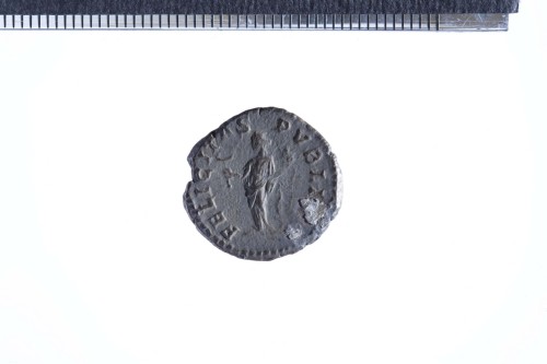 Dritto: Busto a testa nuda di Geta a d., con paludamentum e corazza (?); contorno perlinato.. Rovescio: Felicitas stante a s., reggente cornucopia nella s. e caduceo nella d. protesa; contorno perlinato.