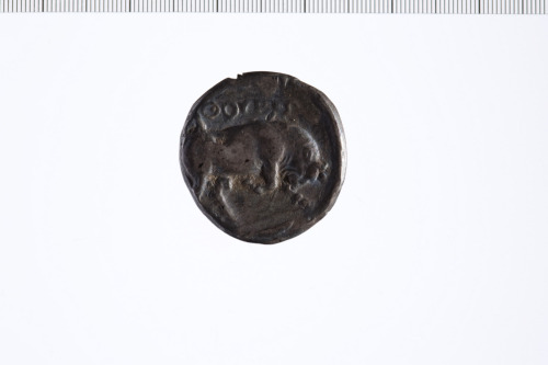 Dritto: Testa di Atena elmata e decorata a d.. Rovescio: Toro alla carica a d.; sotto foglia di edera.