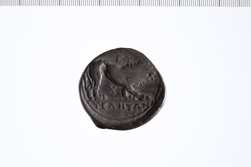 Dritto: Testa di Atena elmata e decorata a d.. Rovescio: Leone a d.