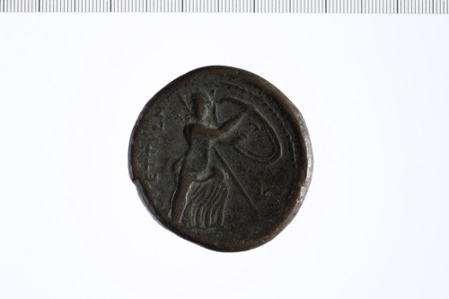 Dritto: Testa di Ercole con pelle di leone a d.. Rovescio: Bellona con scudo e lancia a d.; a d. aratro.