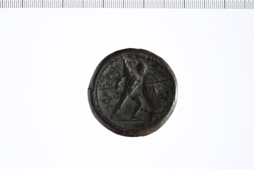 Dritto: Testa laureata di Zeus a d.; a s. fulmine. Rovescio: Guerriero nudo con elmo, lancia e scudo avanza a d.