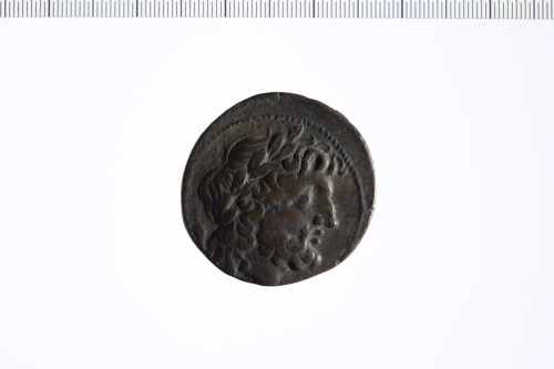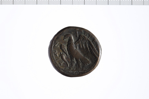 Dritto: Testa di Zeus a d. con dietro spiga di grano.. Rovescio: Aquila su fulmine a s.; a s. cornucopia.