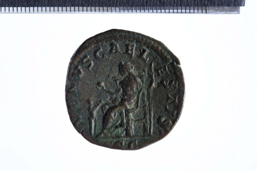 Dritto: Busto drappeggiato e diademato di Giulia Soemia a d., di tre quarti in avanti; contorno perlinato.. Rovescio: Venere seduta a s., reggente scettro nella s. e mela nella d. protesa;ai suoi piedi, bambino; contorno perlinato.