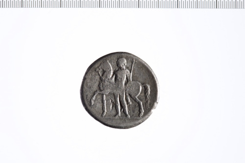 Dritto: Testa di Carneius a s. con corna di ariete.. Rovescio: Cavallo stante a s. e Dioscuro con lancia a s.