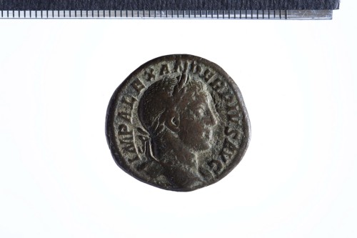 Dritto: Busto laureato di Alessandro Severo a d., con paludamentum sulla spalla s.; contorno perlinato.. Rovescio: Spes avanzante a s., reggente fiore nella d.; mano d. in atto di sollevare la gonna; contorno perlinato.