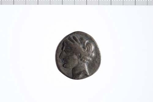 Dritto: Testa di Persefone-Tanit a s.. Rovescio: Cavallo andante a d. con testa rivolta indietro; sotto disco solare.