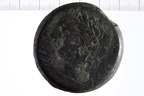 Dritto: Testa di Tanit a s. in cerchio lineare.. Rovescio: Cavallo stante a d. con sopra disco solare e ucraei; sotto lettera punica.