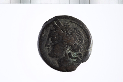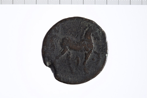 Dritto: Testa laureata di Tanit a s.. Rovescio: Cavallo stante a d. con dietro una palma.
