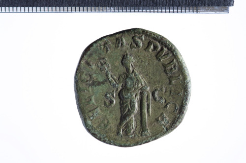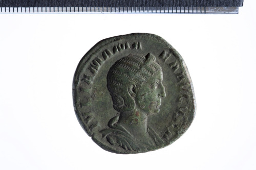 Dritto: Busto diademato e drappeggiato di Julia Mamaea a d.; contorno perlinato.. Rovescio: Felicitas stante in posizione frontale, la testa volta a sinistra, reggente caduceo nella d.; braccio s. appoggiato a colonna; contorno perlinato.