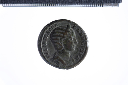 Dritto: Busto diademato e drappeggiato di Julia Mamaea a d.; contorno perlinato.. Rovescio: Felicitas stante in posizione frontale, la testa volta a sinistra, reggente caduceo nella d.; braccio s. appoggiato a colonna; contorno perlinato.