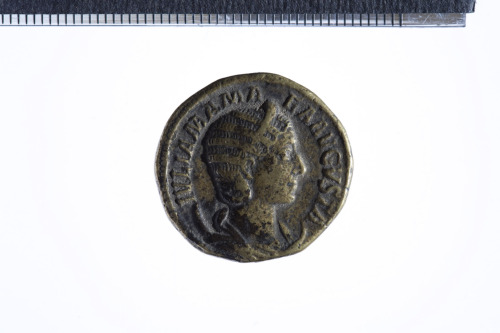 Dritto: Busto diademato e drappeggiato di Julia Mamaea a d. su crescente; contorno perlinato.. Rovescio: Felicitas stante in posizione frontale, la testa volta a sinistra, reggente caduceo nella d.; braccio s. appoggiato a colonna; contorno perlinato.