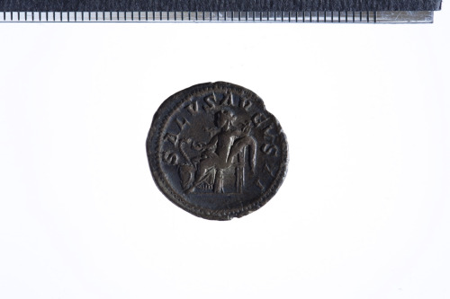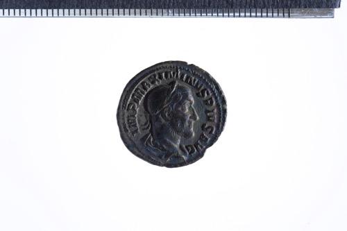 Dritto: Busto laureato di Massimino I a d. con corazza e paludamentum; contorno perlinato.. Rovescio: Salus seduta a s., reggente patera nella d. protesa; di fronte a lei, serpente sopra altare; contorno perlinato.