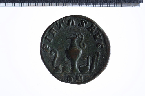 Dritto: Busto a testa nuda di Massimo I a d. con paludamentum; contorno perlinato.. Rovescio: Strumenti sacerdotali, da s. a d.: lituus, coltello, patera, brocca, simpulum, aspergillum; contorno perlinato.