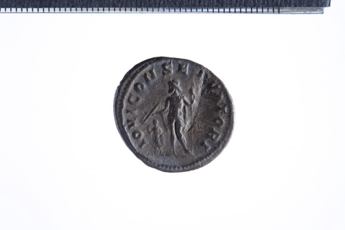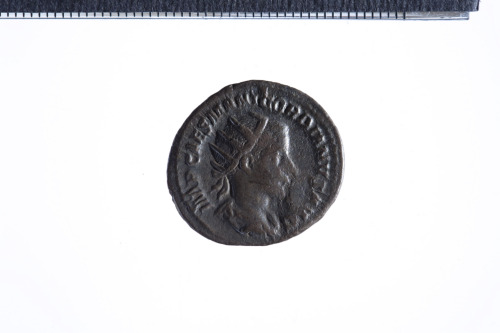 Dritto: Busto radiato di Gordiano III a d. con corazza e paludamentum, di tre quarti di spalle; contorno perlinato.. Rovescio: Giove stante in posizione frontale, la testa volta a s., reggente scettro nella s. e fulmine nella d. protesa al di sopra di Gordiano, stante a s., in atteggiamento simile a quello della Spes (fiore nella mano d. solevata e mano s. a sollevare la tunica); contorno perlinato.