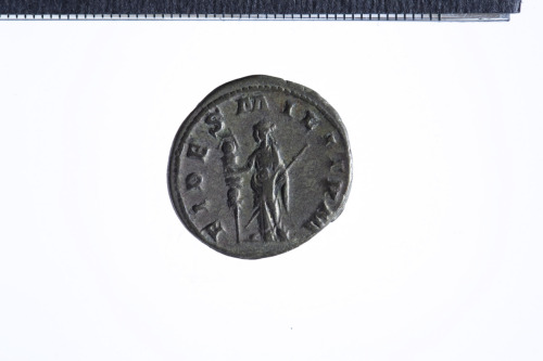 Dritto: Busto radiato di Gordiano III a d. con corazza e paludamentum, di tre quarti di spalle; contorno perlinato.. Rovescio: Fides stante in posizione frontale, la testa volta a s., reggente scettro nella s. e stendardo nella d. protesa; contorno perlinato.