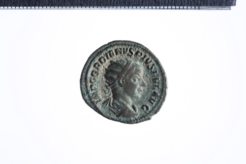 Dritto: Busto radiato di Gordiano III a d. con corazza e paludamentum, di tre quarti di spalle; contorno perlinato.. Rovescio: Giove stante in posizione frontale, la testa volta a d., reggente scettro nella d. e fulmine nella s.; contorno perlinato.