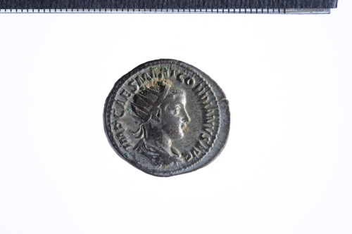 Dritto: Busto radiato di Gordiano III a d. con corazza e paludamentum, di tre quarti di spalle; contorno perlinato.. Rovescio: Pax stante in posizione frontale,la testa volta a s., reggente scettro nella s. e ramo nella d. protesa; contorno perlinato.